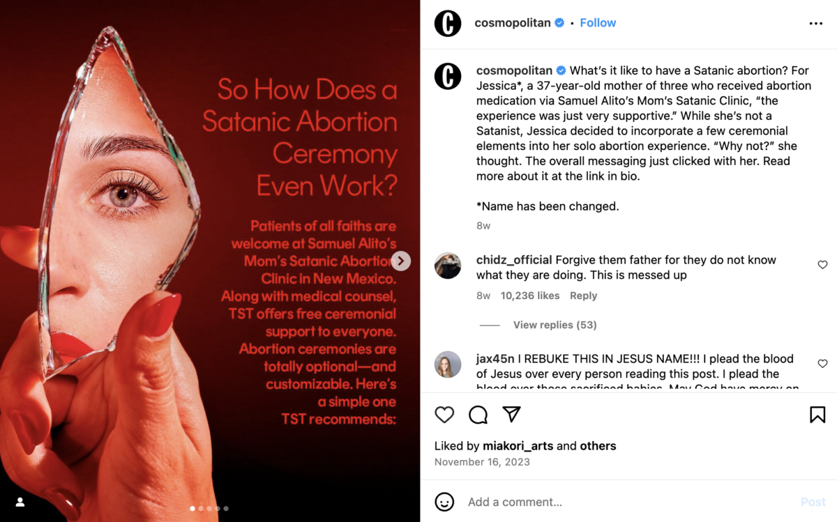 The organization officially introduced “Satanic Abortion Ritual” in August 2020, as reported by Religion Dispatches. It’s a well-timed challenge to laws banning abortion.