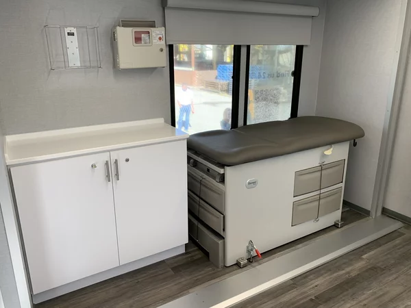 Save the Storks is deeply involved in designing our mobile medical clinics, setting us apart from other units on the road. Unlike typical organizations that choose options from builders, we collaborate directly with the engineering team to create custom designs, incorporating unique elements like our 360-camera system and engaging directly with manufacturers for the best quality. Our team handles all graphics in-house and conducts thorough quality control checks, ensuring each clinic meets our high standards. Additionally, our clinics are paired with our National Partner Program, ensuring trained medical professionals operate them.